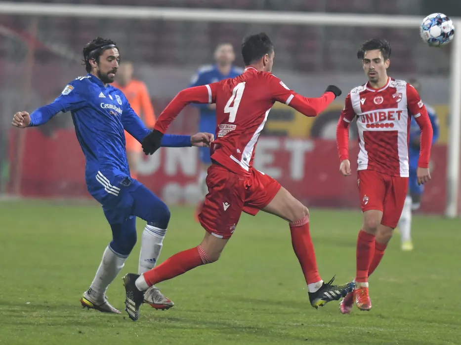 Andrea Compagno si Andrei Radu in meciul de fotbal dintre Dinamo Bucuresti si FC U Craiova, contand pentru Liga 1 Casa Pariurilor, desfasurat pe Stadionul Dinamo din Bucuresti, vineri 26 noiembrie 2021. © FOTO:Razvan Pasarica/SPORT PICTURES