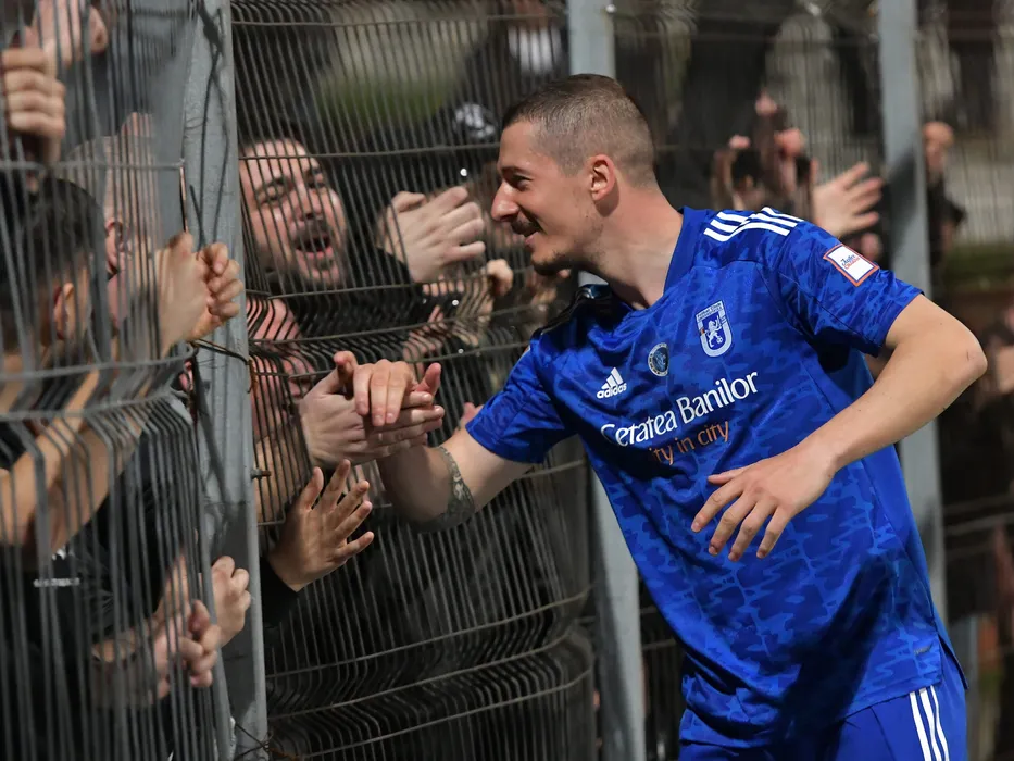 Alexandru Vlad Achim isi saluta suporetrii dupa meciul de fotbal dintre Dinamo Bucuresti si FC U Craiova, contand pentru Play-out-ul Ligii 1 Casa Pariurilor, desfasurat pe Stadionul Dinamo din Bucuresti, vineri 8 aprilie 2022. © FOTO:Razvan Pasarica/SPORT PICTURES