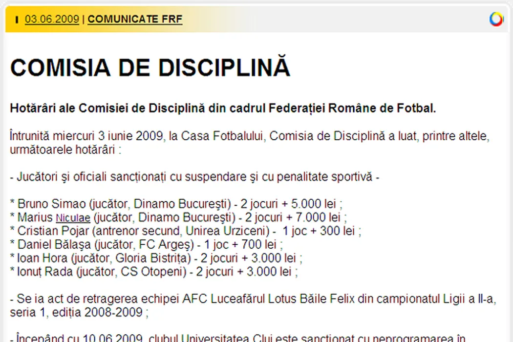 Niculae, suspendat două etape** și amendat cu 7000 RON