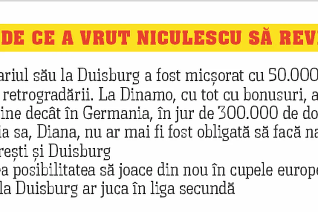 Niculescu nu mai e dorit la Dinamo: „Rămâi la Duisburg!”