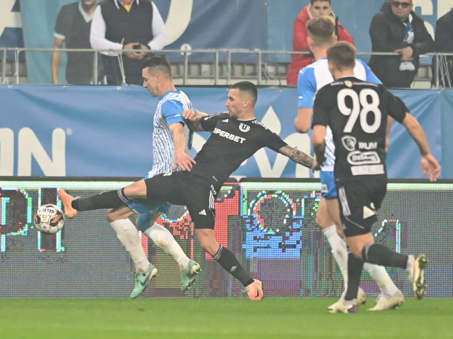 Alexandru Mateiu si Ovidiu Alexandru Bic în meciul de fotbal dintre Universitatea Craiova si Universitatea Cluj, contând pentru Superliga Superbet, desfășurat pe Stadionul Ion Oblemenco din Craiova, vineri 9 februarie 2024. © FOTO: Răzvan PĂSĂRICĂ/SPORT PICTURES