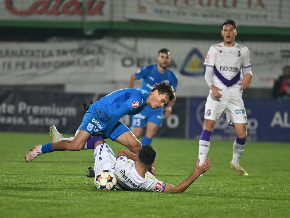 David Matei si Leard Sadriu in meciul de fotbal dintre FC Arges si Universitatea Craiova, contand pentru Superliga Superbet, desfasurat pe Stadionul Orasenesc din Mioveni, vineri 21 noiembrie 2025. © FOTO:Razvan Pasarica/SPORT PICTURES