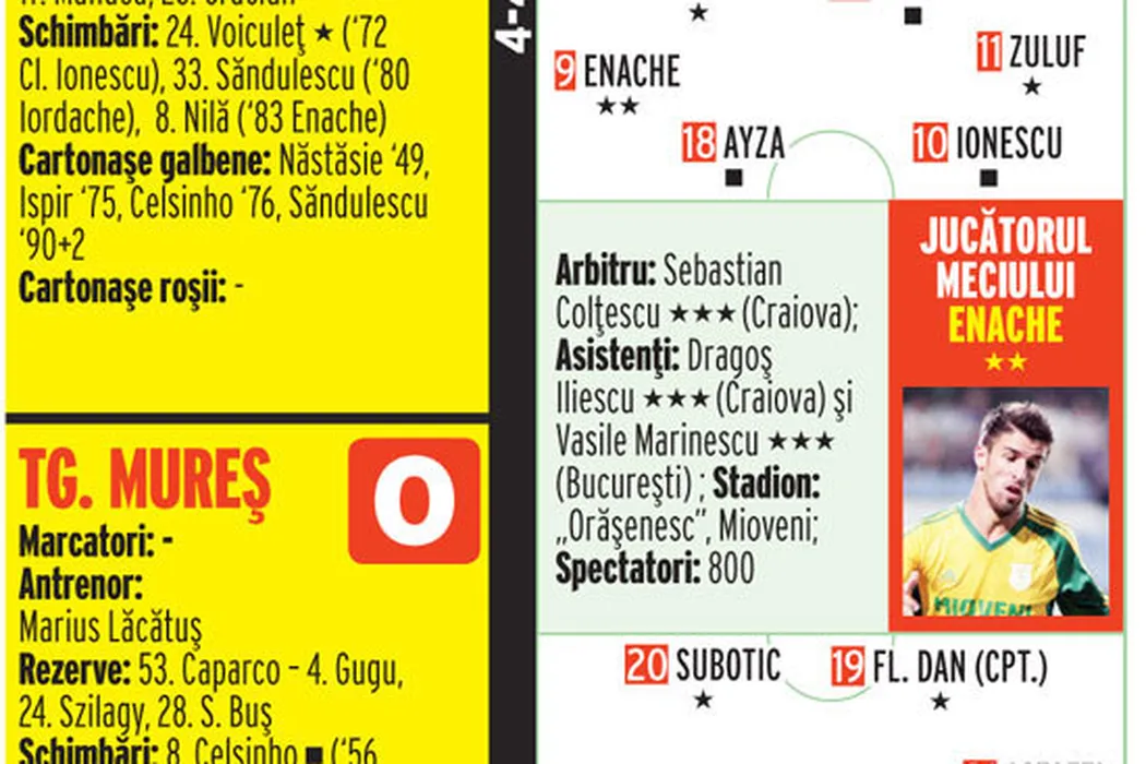 Nimic la nimic!** CS Mioveni – FCM Tg. Mureș 0-0