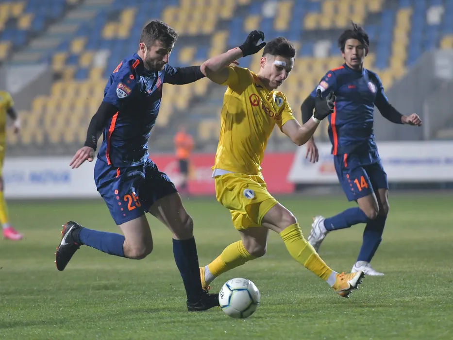 Mihai Constantinescu si Lucian Cazan in meciul de fotbal dintre Petrolul Ploiesti si Metaloglobus Bucuresti, contand pentru Liga a-2-a Casa Pariurilor, desfasurat fara spectatori pe Stadionul Ilie Oana din Ploiesti, marti 23 februarie 2021. © FOTO:Razvan Pasarica/SPORT PICTURES