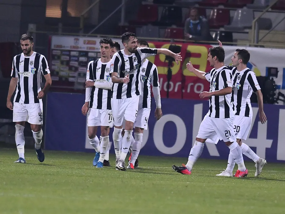 Valerica Marius Gaman se bucura dupa un gol marcat alaturi de Mattia Montini, Albert Tivadar Stahl, Ljubjan Crepulja si David Bruno Carneiro in meciul de fotbal dintre Astra Giurgiu si CSM Politehnica Iasi, contand pentru Liga 1 Casa Pariurilor, desfasurat fara spectatori pe Stadionul Marin Anastasovici din Giurgiu, sambata 24 octombrie 2020. © FOTO:Razvan Pasarica/SPORT PICTURES