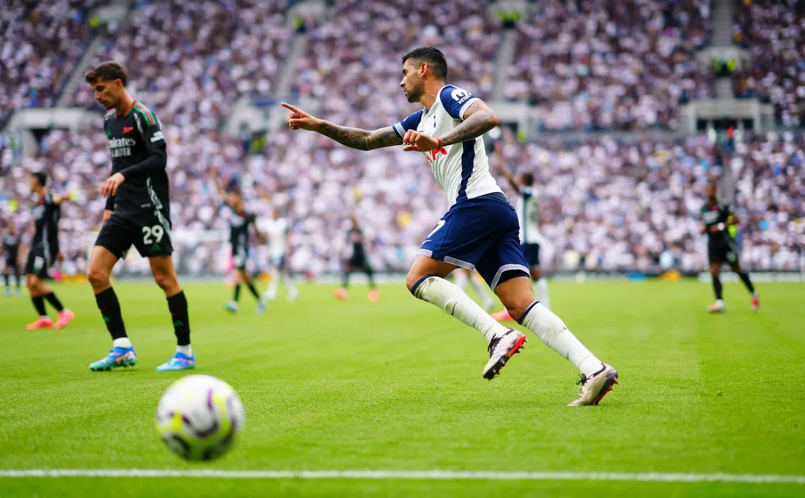 Tottenham Hotspur v Arsenal, Premier League, Football, Tottenham Hotspur Stadium, London, UK, 15 Sep 2024,Image: 908031430, License: Rights-managed, Restrictions: EDITORIAL USE ONLY No use with unauthorised audio, video, data, fixture lists, club/league logos or "live" services. Online in-match use limited to 120 images, no video emulation. No use in betting, games or single club/league/player publications., Model Release: no