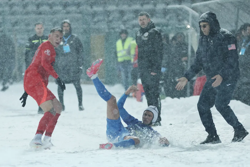 Eugen Neagoe, Luca Alessandro Mihai si Andrei Cosmin Gheorghita in meciul de fotbal dintre Gloria Buzau si FCSB, contand pentru SuperLiga Superbet, desfasurat pe Stadionul Gloria din Buzau, duminica 16 februarie 2025. © FOTO: Gheorghe Fluster/SPORT PICTURES