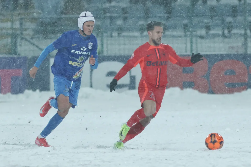 Alexandru Mihail Baluta si Luca Alessandro Mihai in meciul de fotbal dintre Gloria Buzau si FCSB, contand pentru SuperLiga Superbet, desfasurat pe Stadionul Gloria din Buzau, duminica 16 februarie 2025. © FOTO: Gheorghe Fluster/SPORT PICTURES