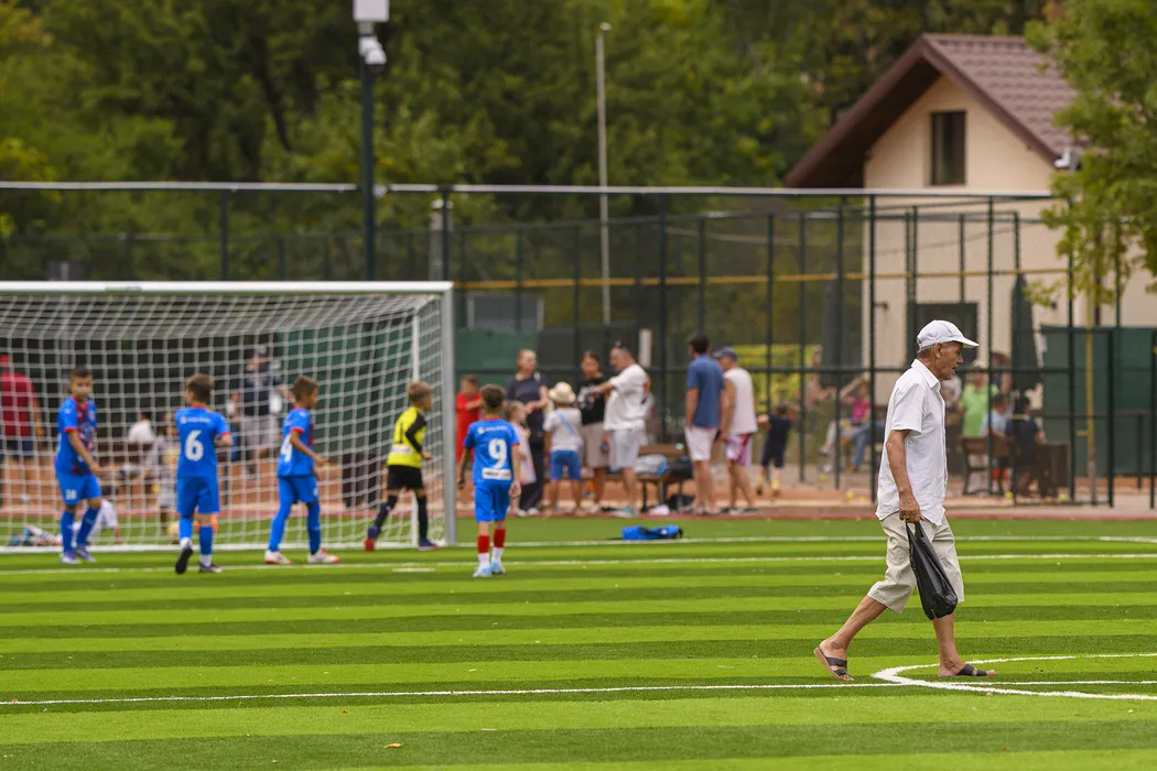 Copii joaca fotbal in timpul evenimentului de deschidere a bazei sportive 'Cristina Neagu', amenajata de primaria sectorului 6, in Bucuresti, vineri, 22 august 2025. ALEXANDRU DOBRE / MEDIAFAX FOTO.