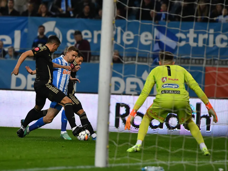 Nicusor Silviu Bancu si Lucian Iulian Cristea in meciul de fotbal dintre Universitatea Craiova si FC Universitatea Cluj, contand pentru SuperLiga Superbet - Play-Off, desfasurat pe Stadionul Ion Oblemenco din Craiova, vineri 14 martie 2025. © FOTO: Remus Badea/SPORT PICTURES