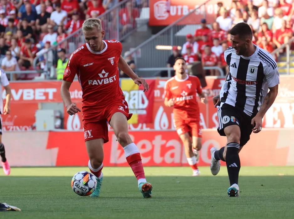 Cristian Petrișor Mihai și Ovidiu Marian Popescu în meciul de fotbal dintre UTA Arad si FC Universitatea Cluj, contând pentru Superliga Superbet, desfășurat pe Arena Francisc Neuman din Arad, luni 29 iulie 2024. © FOTO: Ciprian PETCUȚ/SPORT PICTURES