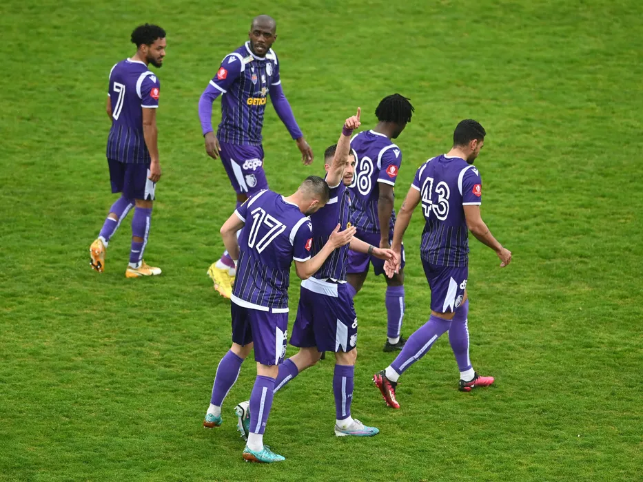 Grigore Ioan Turda se bucura dupa un gol marcat in meciul de fotbal dintre FC Arges si Chindia Targoviste, contand pentru Play-out-ul Superligii Superbet, desfasurat pe Stadionul Nicolae Dobrin din Pitesti, luni 17 aprilie 2023. © FOTO:Razvan Pasarica/SPORT PICTURES