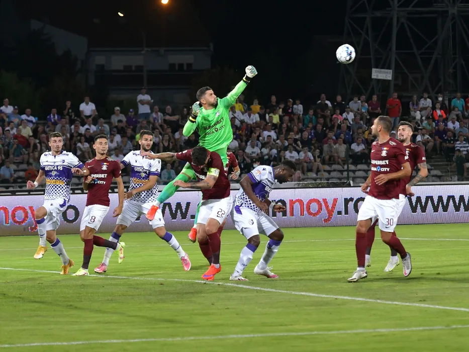 Grigore Ioan Turda, Nicolae Carnat, Ovidiu Andrei Pitian, Horatiu Alexandru Moldovan si Alexandru Cristian Albu in meciul de fotbal dintre FC Arges si Rapid Bucuresti, contand pentru Liga 1 Casa Pariurilor, desfasurat pe Stadionul Nicolae Dobrin din Pitesti, sambata 7 august 2021. © FOTO:Razvan Pasarica/SPORT PICTURES