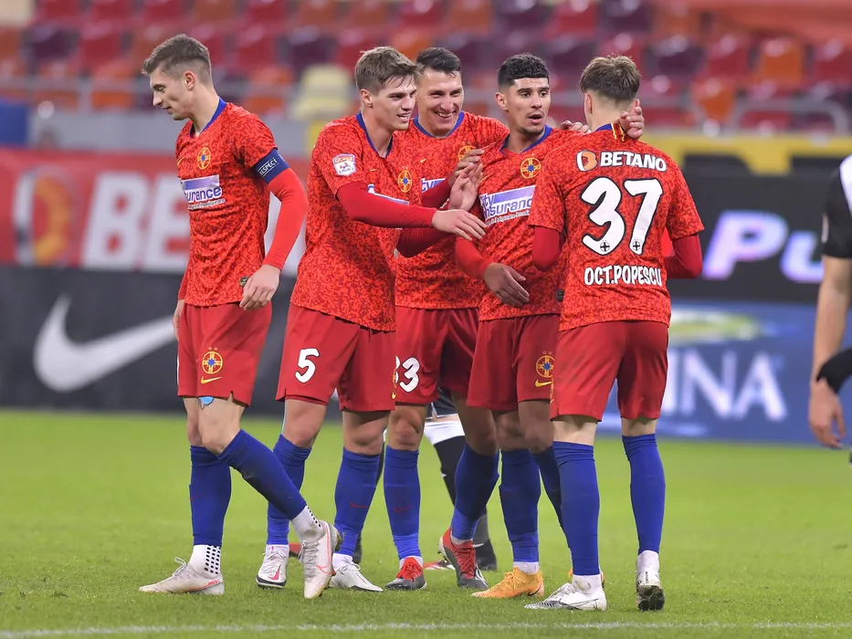 Octavian George Popescu se bucura dupa un gol marcat alaturi de Gabriel Bogdan Simion, Risto Radunovic si Florinel Teodor Coman in meciul de fotbal dintre FCSB si CSM Politehnica Iasi, contand pentru Liga 1 Casa Pariurilor, desfasurat fara spectatori pe Arena Nationala din Bucuresti, sambata 30 ianuarie 2021. © FOTO:Razvan Pasarica/SPORT PICTURES