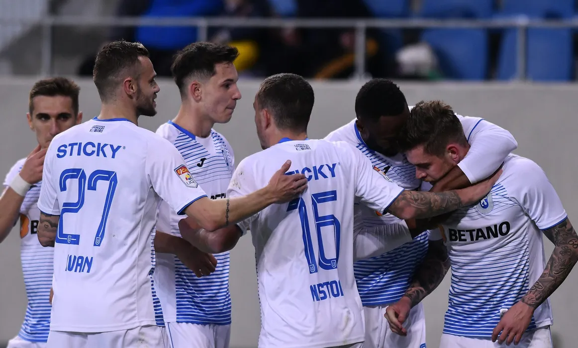 Bucurie a fotbalistilor Craiovei cu Ivan Martic, Luis Emanuel Nitu si Alexandru Cicaldau in meciul de fotbal dintre Universitatea Craiova si Gaz Metan Medias, contand pentru Liga 1 Casa Pariurilor, disputat pe Stadionul Ion Oblemenco din Craiova, duminica 1 martie 2020. © FOTO:Razvan Pasarica/SPORT PICTURES