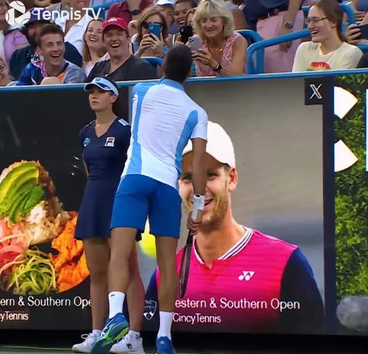 Novak Djokovic i-a trimis pupici unei spectatoare chiar în timpul meciului! Moment savuros la turneul de la Cincinnati | VIDEO