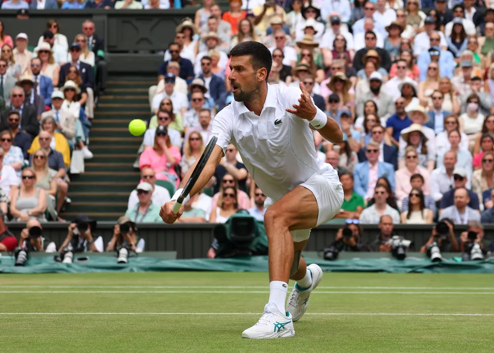 July 14, 2024, Wimbledon, London, England: 14th July 2024; All England Lawn Tennis and Croquet Club, London, England; Wimbledon Tennis Tournament, Day 14; Novak Djokovic (SRB) at the net against Carlos Alcaraz (ESP), Gentlemens Singles Final (Credit Image: © John Patrick Fletcher/Action Plus Sports via ZUMA Press Wire)
