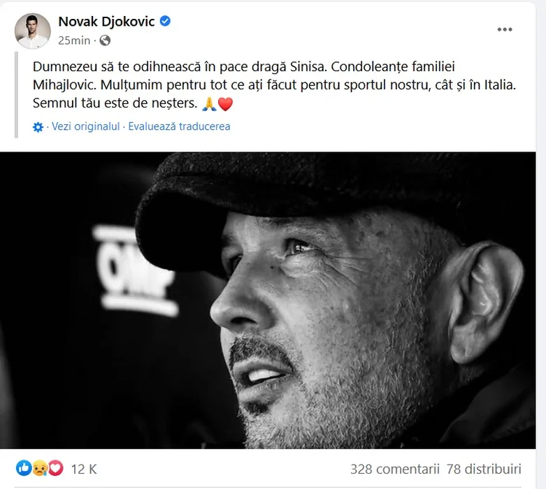 Novak Djokovic, mesaj plin de emoție după moartea lui Sinisa Mihajlovic: „Mulțumesc pentru tot!” Gestul fostului fotbalist pe care „Nole” nu îl poate uita