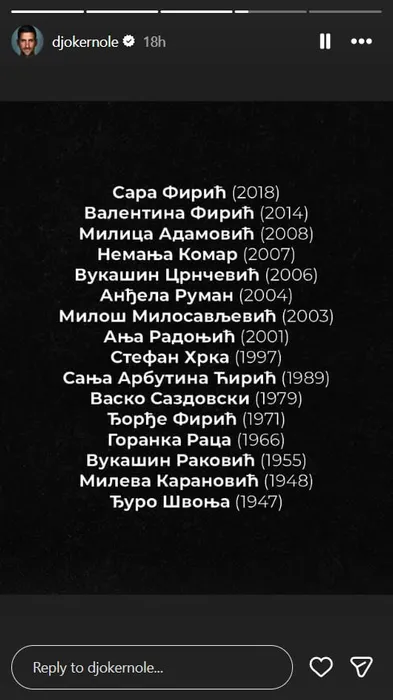 Novak Djokovic n-a uitat de victimele tragediei de la Novi Sad. Ce a făcut la un an de la moartea celor 16 oameni care a zguduit Serbia