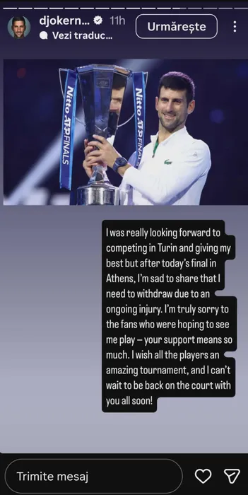 Novak Djokovic s-a retras de la Turneul Campionilor! Cum și-a motivat sârbul decizia