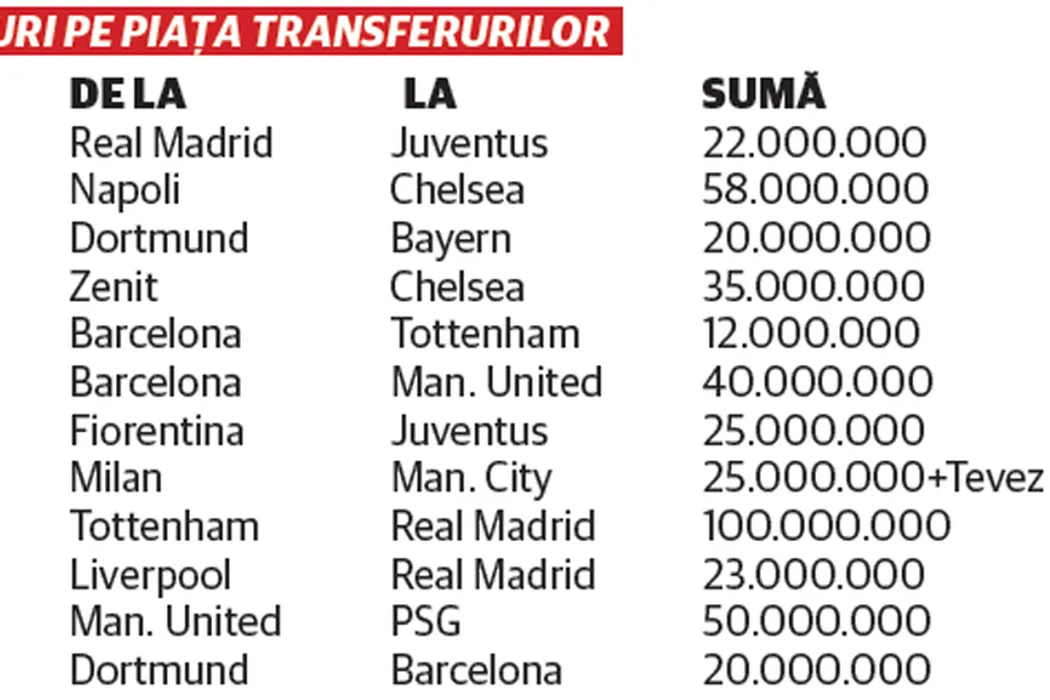 Nu e criză în fotbal. Marile cluburi sunt gata să ofere sume importante pentru fotbaliști de top