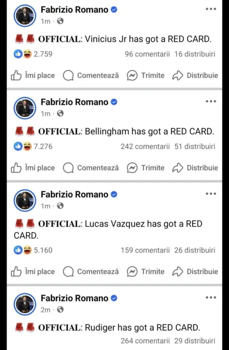 Nu e glumă! Arbitrul le-a dat 4 cartonaşe roşii vedetelor lui Real Madrid, după terminarea finalei cu Barcelona: Vinicius, Bellingham, Rudiger şi Vazquez riscă suspendări record pentru că l-au atacat pe central!