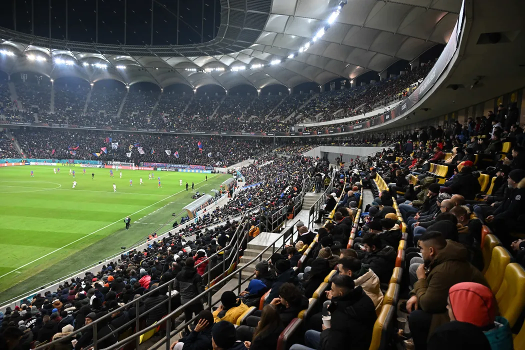 Imagine de ansamblu cu suporteri in tribune la meciul de fotbal dintre FCSB si FC Olympiacos Pireu, contand pentru UEFA Europa League, desfasurat pe Arena Nationala din Bucuresti, joi 28 noiembrie 2024. © FOTO:Razvan Pasarica/SPORT PICTURES