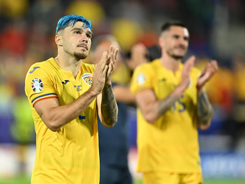 Andrei Rațiu saluta suporterii romani dupa meciul de fotbal dintre Belgia si Romania, contand pentru UEFA EURO 2024, desfasurat pe Stadionul Cologne din Koln, sambata 22 iunie 2024. © FOTO:Razvan Pasarica/SPORT PICTURES