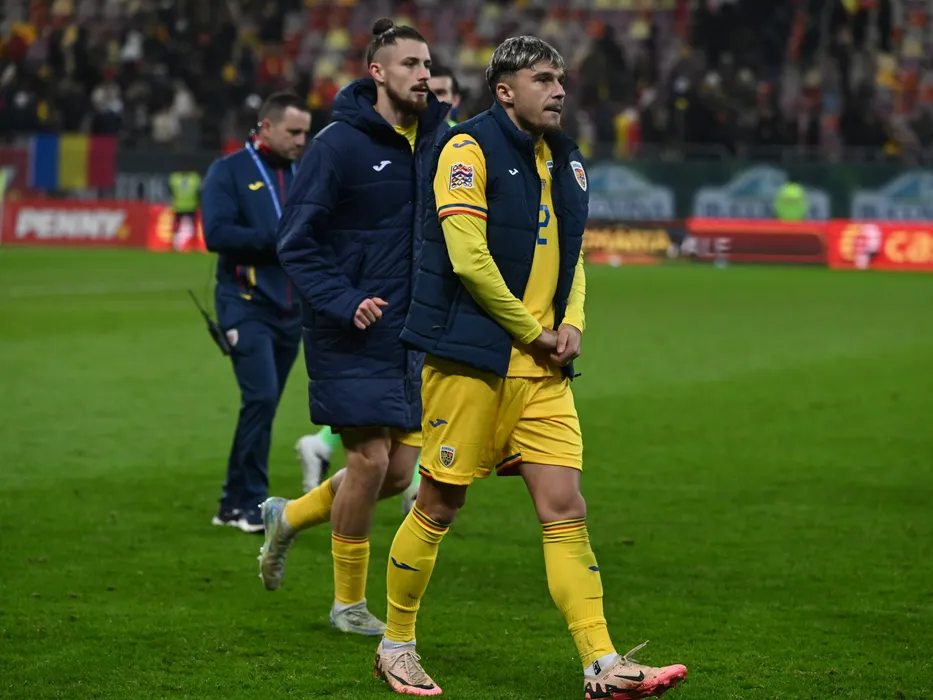 Fotbaliștii romani Radu Drăgușin si Andrei Rațiu parasesc terenul după meciul de fotbal dintre Romania si Kosovo, contand pentru Liga Natiunilor, desfasurat pe Arena Nationala din Bucuresti, vineri 15 noiembrie 2024. © FOTO:Razvan Pasarica/SPORT PICTURES
