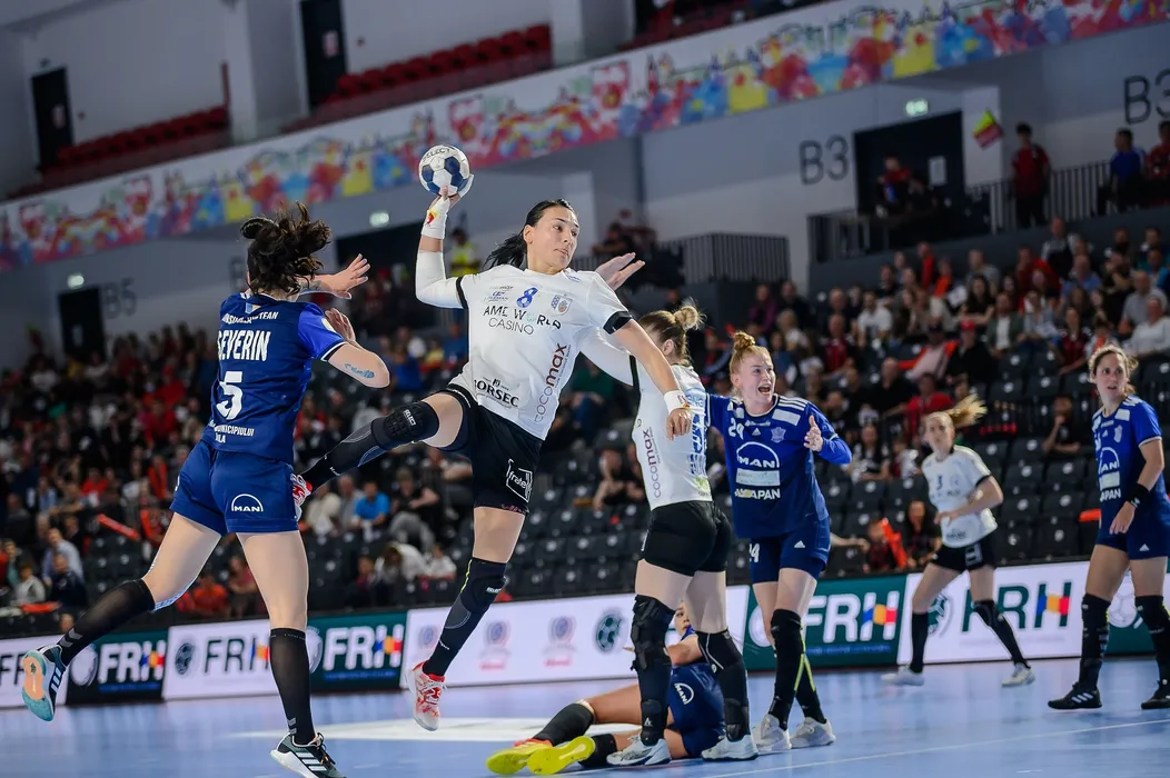 Meciul de handbal feminin dintre HC Dunarea Braila si CSM Bucuresti, contand pentru semifinala Cupei României, desfasurat in Sala Polivalenta din Bistrita, duminica 20 mai 2023. © FOTO:Dan Potor/SPORT PICTURES