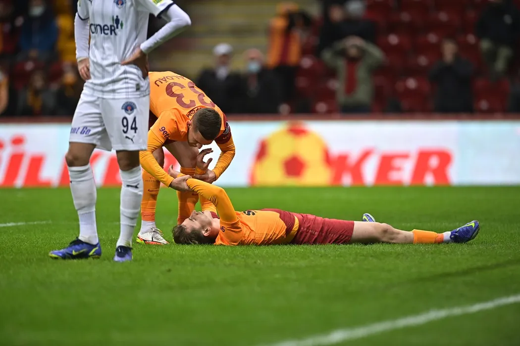 Alexandru Cicaldau and Kerem Akturkoglu of Galatasaray during the Turkish Super Legue football match between Galatasaray and Kasimpasa at NEF Stadium in Istanbul , Turkey on January 20 ,2022 . ( Photo by Seskimphoto ),Image: 655067288, License: Rights-managed, Restrictions: Not available for publication in Turkey., Model Release: no, Credit line: Profimedia