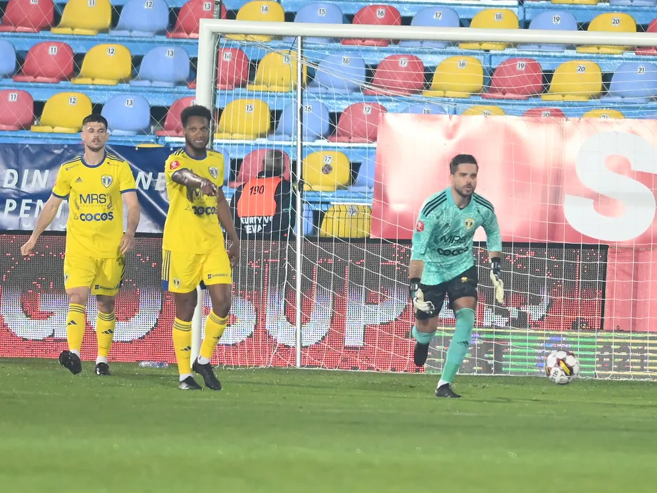 Fotbalistii ploiesteni Bart Adrianus Johannes Meijers, Felix Mathaus Lima Santos si Andreas Leitner la meciul de fotbal dintre FC Voluntari si Petrolul Ploiesti, contand pentru Play-out-ul Superligii Superbet, desfasurat pe Stadionul Anghel Iordanescu din Voluntari, luni 24 aprilie 2023. © FOTO:Razvan Pasarica/SPORT PICTURES
