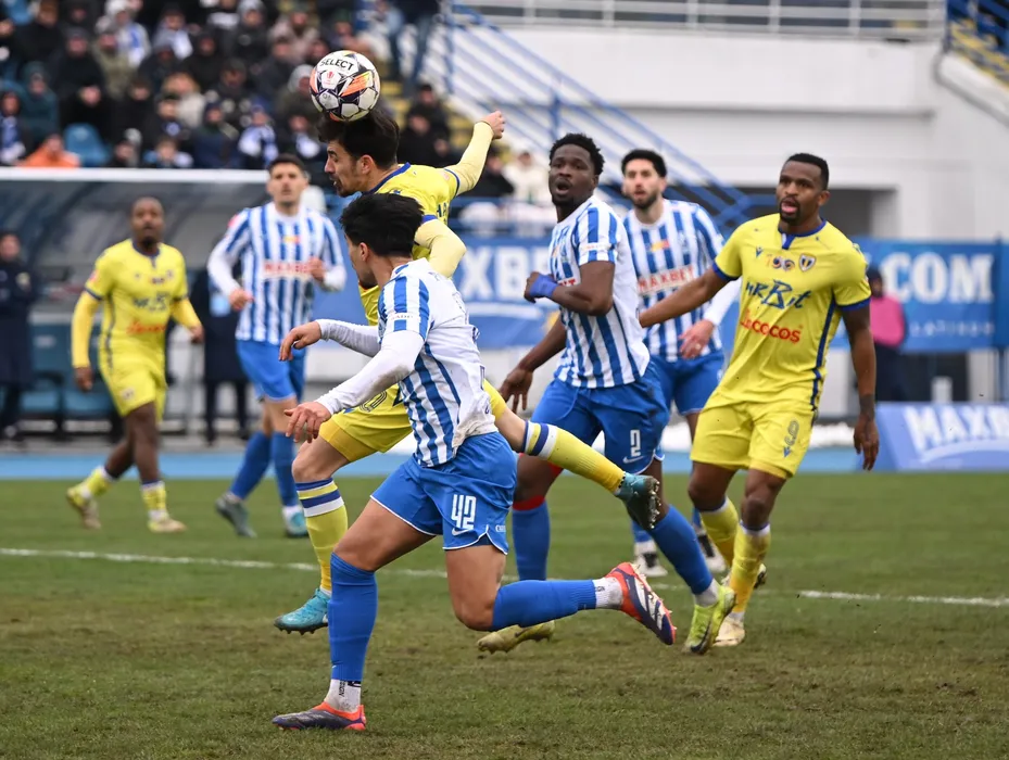 Sergiu Catalin Hanca si Guilherme Araujo Soarez, Mohammed Umar in meciul de fotbal dintre Poli Iasi si FC Petrolul Ploiesti, contand pentru SuperLiga Superbet, desfasurat pe Stadionul Emil Alexandrescu din Iasi, duminica 2 martie 2025. © FOTO: Tudy/SPORT PICTURES
