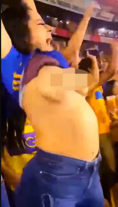 Asta da bucurie! O femeie și-a arătat fără strop de rușine sânii voluptuoși, pentru a sărbători un gol marcat de echipa favorită | FOTO