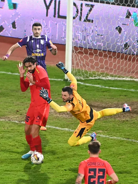 Grigore Ioan Turda, Andrea Compagno si Catalin George Straton in meciul de fotbal dintre FC Arges si FCSB, contand pentru Superliga Superbet, desfasurat pe Stadionul Nicolae Dobrin din Pitesti, duminica 26 februarie 2023. © FOTO:Razvan Pasarica/SPORT PICTURES