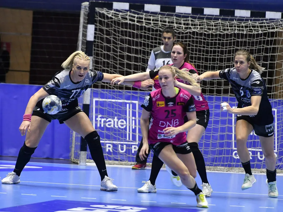 Crina Pintea si Linnea Torstensson in meciul de handbal feminin dintre CSM Bucuresti si Vipers Kristiansand, contand pentru Liga Campionilor, disputat in Sala Ioan Kunst Ghermanescu-Polivalenta din Bucuresti, sambata 7 martie 2020. © FOTO:Razvan Pasarica/SPORT PICTURES