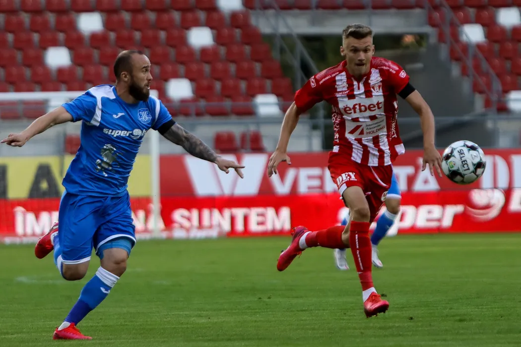 Marian Sorin Busu (S) si Dragost Tesca in meciul de fotbal dintre UTA Arad si CSM Politehnica Iasi, contand pentru etapa a 4-a din Liga 1 Casa Pariurilor, desfasurat pe Arena Francisc Neuman din Arad, duminica, 20 septembrie 2020. © FOTO:Ciprian Petcut/SPORT PICTURES
