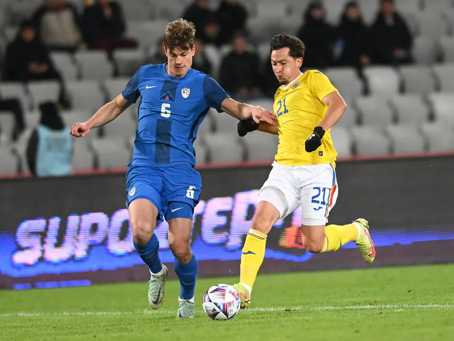 Jaka Bijol si Olimpiu Vasile Moruțan in meciul amical de fotbal dintre Romania si Slovenia, desfasurat pe Cluj Arena din Cluj Napoca, joi 17 noiembrie 2022. © FOTO:Razvan Pasarica/SPORT PICTURES