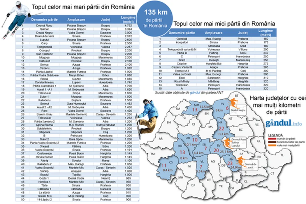 O nouă pârtie de schi în România. Infografie spectaculoasă: Topul celor mai mari pârtii din țara noastră