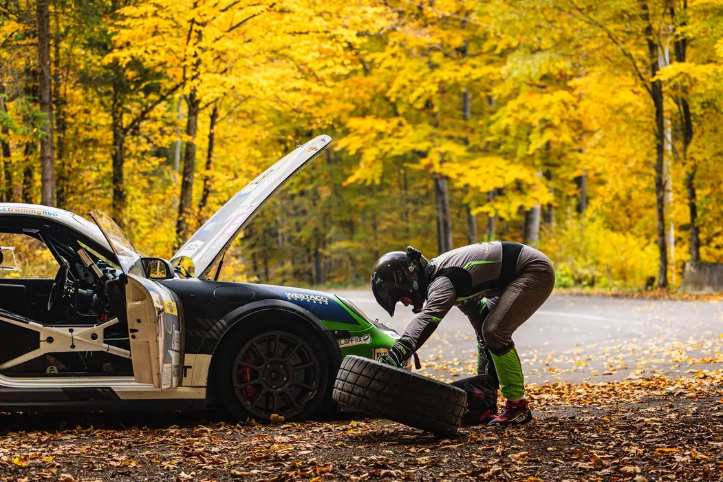 O pană de cauciuc l-a oprit pe Simone Tempestini din drumul spre victorie la Raliul Brașovului: imagini spectaculoase