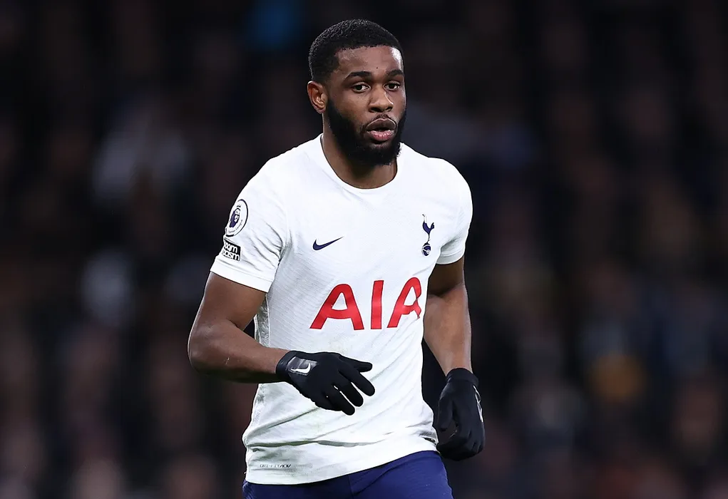 LONDON, ENGLAND - NOVEMBER 21: Japhet Tanganga of Tottenham Hotspur looks upfield during the Premier League match between Tottenham Hotspur and Leeds United at Tottenham Hotspur Stadium on November 21, 2021 in London, England. (Photo by Ryan Pierse/Getty Images)