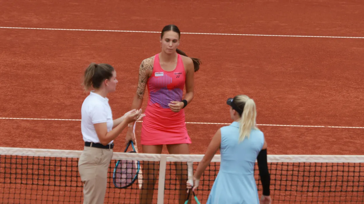 Anca Todoni și Dalila Jakupovic la startul meciului de tenis dintre Anca Todoni și Dalila Jakupovic din cadrul turneului Ţiriac Foundation Trophy 2024 WTA 125 - Turul 1, desfășurat la Centrul Național de Tenis din București, miercuri 11 septembrie 2024. © FOTO: Marian Valentin BURLACU/SPORT PICTURES