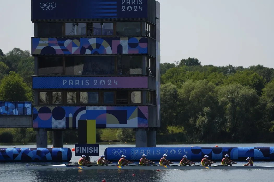 Team Romania competes in the women's rowing eight heats at the 2024 Summer Olympics, Monday, July 29, 2024, in Vaires-sur-Marne, France.,Image: 893673972, License: Rights-managed, Restrictions: This content is intended for editorial use only. For other uses, additional clearances may be required., Model Release: no