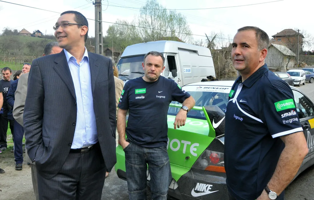 Victor Ponta (S) alaturi Karoly Borbely (C) si Titi Aur (D) participa la o etapa de testare a masinilor, langa Curtea de Arges, vineri, 9 aprilie 2010. STEFAN BIRLODEANU / MEDIAFAX FOTO