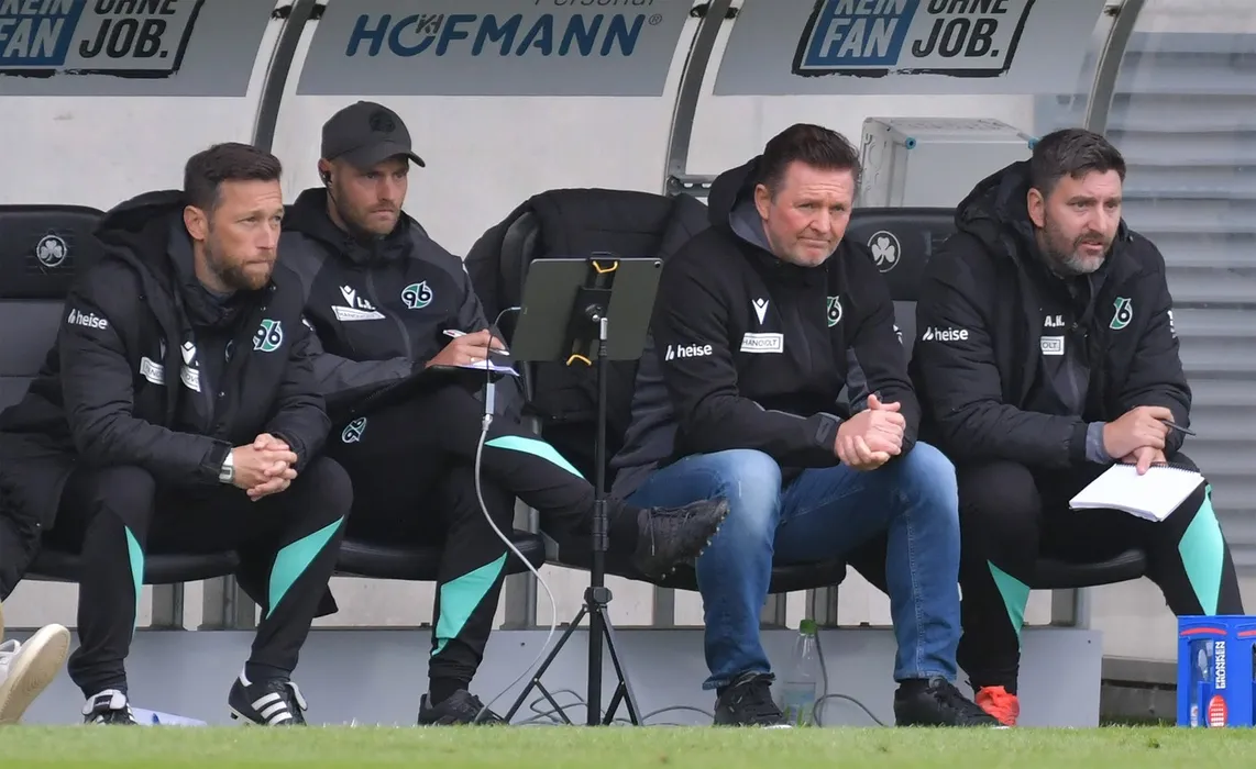 05.10.2025, xblx, Fussball 2.Bundesliga, SpVgg Greuther Fuerth - Hannover 96 v.l. Co Trainer Levent Suerme Sürme Hannover 96, Co Trainer Lars Barlemann Hannover 96, Trainer Christian Titz Hannover 96, Co Trainer Andre Kilian Hannover 96 DFL/DFB REGULATIONS PROHIBIT ANY USE OF PHOTOGRAPHS as IMAGE SEQUENCES and/or QUASI-VIDEO Fuerth *** 05 10 2025, xblx, Soccer 2 Bundesliga, SpVgg Greuther Fuerth Hannover 96 v l Co Coach Levent Suerme Sürme Hannover 96 , Co Coach Lars Barlemann Hannover 96 , Coach Christian Titz Hannover 96 , Co Coach Andre Kilian Hannover 96 DFL DFB REGULATIONS PROHIBIT ANY USE OF PHOTOGRAPHS as IMAGE SEQUENCES and or QUASI VIDEO Fuerth,Image: 1046075956, License: Rights-managed, Restrictions: , Model Release: no, Credit line: Heiko Blatterspiel / imago sportfotodienst / Profimedia