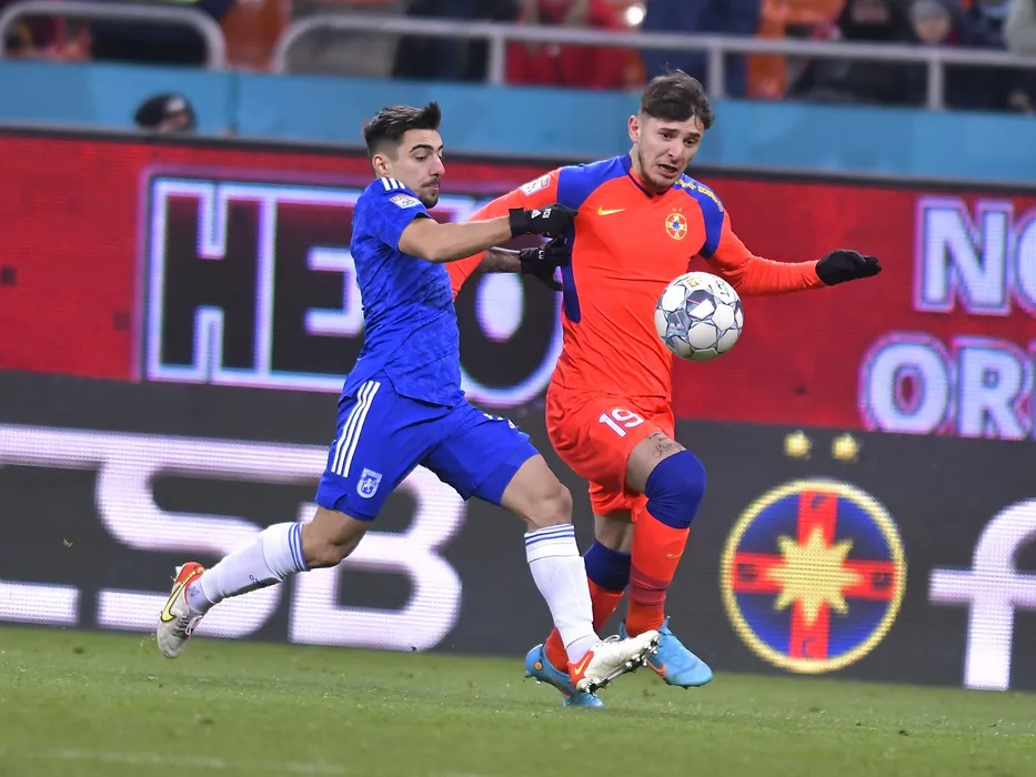 Radu Alexandru Negru si Ianis Ilie Stoica in meciul de fotbal dintre FCSB si FC U Craiova, contand pentru Liga 1 Casa Pariurilor, desfasurat pe Arena Nationala din Bucuresti, duminica 6 februarie 2022. © FOTO:Razvan Pasarica/SPORT PICTURES