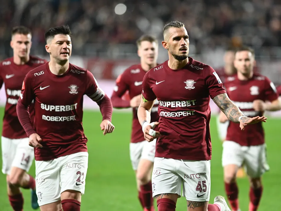 Marko Dugandzic se bucura dupa un gol marcat alaturi de Cristian Ionut Sapunaru in meciul de fotbal dintre Rapid Bucuresti si Sepsi OSK Sfantu Gheorghe, contand pentru Superliga Superbet, desfasurat pe Stadionul Rapid Giulesti din Bucuresti, vineri 20 ianuarie 2023. © FOTO:Razvan Pasarica/SPORT PICTURES