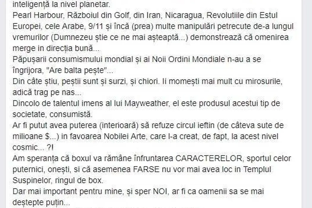 Obreja spală pe jos cu americanii care au organizat evenimentul Mayweather – McGregor. Comentariul dur al fostului șef al FR de Box: „Am speranța că acest tip de farse nu vor mai exista în templul suspinelor!”