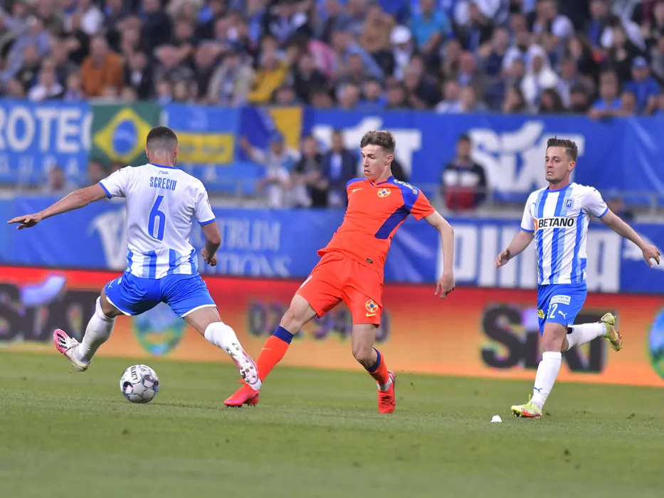 Octavian George Popescu si Gustavo Vagenin in meciul de fotbal dintre Universitatea Craiova si FCSB, contand pentru Play-off-ul Ligii 1 Casa Pariurilor, desfasurat pe Stadionul Ion Oblemenco din Craiova, duminica 8 mai 2022. © FOTO:Razvan Pasarica/SPORT PICTURES