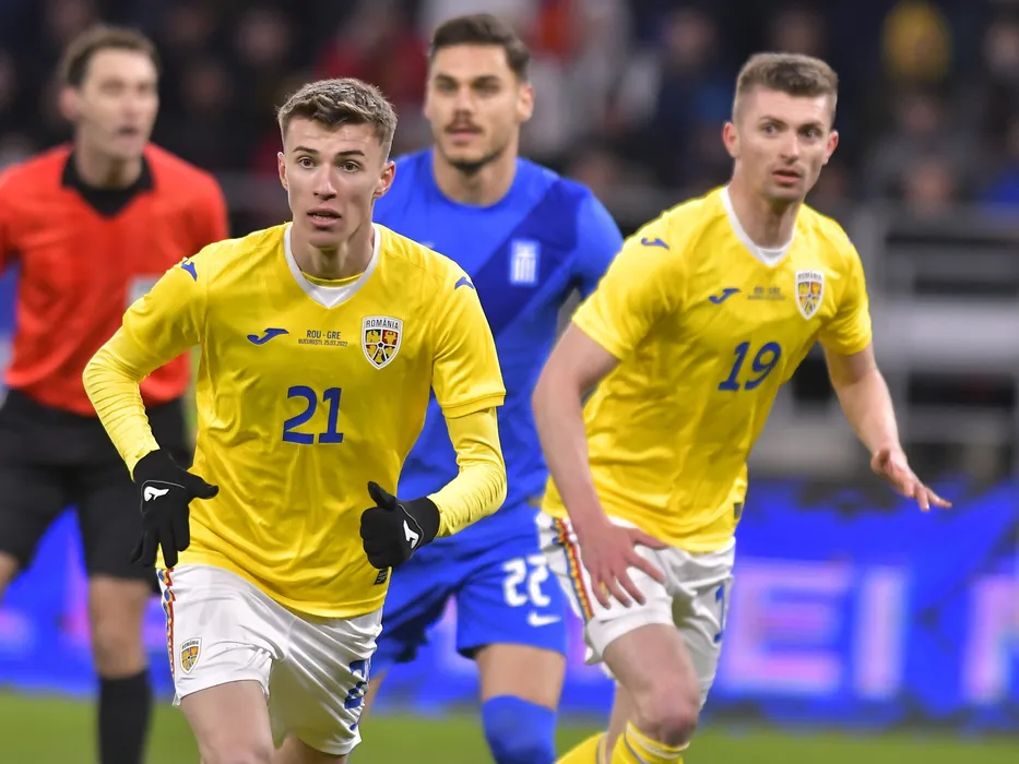Octavian Popescu si Florin Tănase in meciul amical de fotbal dintre Romania si Grecia, desfasurat pe Stadionul Steaua din Bucuresti, vineri 25 martie 2022. © FOTO:Razvan Pasarica/SPORT PICTURES
